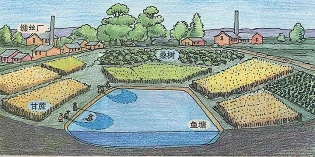 池塘內養魚,塘四周種桑樹,桑園內養雞。魚池淤泥及雞糞作桑樹肥料,蠶蛹及桑葉喂雞,蠶糞喂魚,使桑、魚、雞形成良好的生態循環。