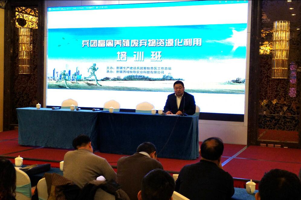 為貫徹落實《國務院辦公廳關于加快推進畜禽養殖廢棄物資源化利用的意見》(國辦發[ 2017] 48號),加快推進兵團畜禽養殖廢棄物資源化利用工作,由兵團畜牧獸醫工作總站主辦,新疆西域牧歌農業科技有限公司承辦的兵團畜禽養殖廢棄物資源化利用培訓班,于2018年1月21日在石河子市舉行。